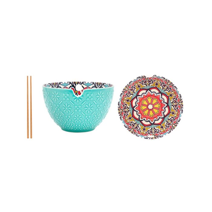 En snygg skål gjord för nudlar med tillhörande pinnar. Skålen är tillverkad i fint porslin med ett mönster inspirerat av Toscana och finns i 3 olika färgställningar.