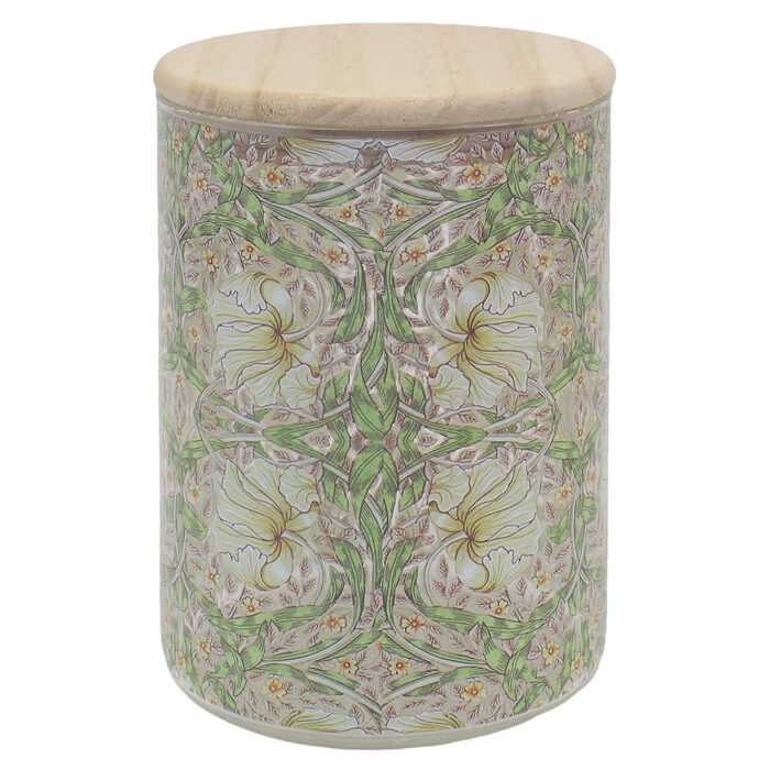 Tillverkad i glas med trälock och dekorerad med William Morris populära mönster Pimpernel.